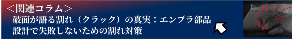 設計現場において「成形品が割れた」「使っているうちにひびが入った」といったトラブルは、決して珍しいものではありません。特に、金属と比べて強度や剛性が劣るとされるプラスチック材料では、高性能なエンジニアリングプラスチック(エンプラ)を用いても、予期せぬ破損が後を絶ちません。