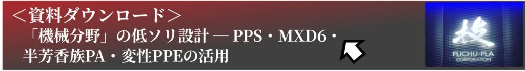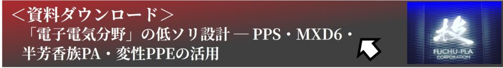 プラスチック製品の反り対策は、材料特性の理解だけでなく、設計、成形条件の最適化が不可欠です。府中プラでは、低ソリ材料として知られるPPS、MXD6、半芳香族PA、変性PPEなどを活用した反り対策設計を提案します。本コラムでは、これらの材料の特性を最大限に引き出し、反りを抑制するための具体的な指針を解説します。