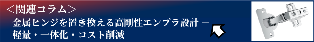 エンプラ製ヒンジの価値 - 一体成形・軽量/静音・デザイン自由度