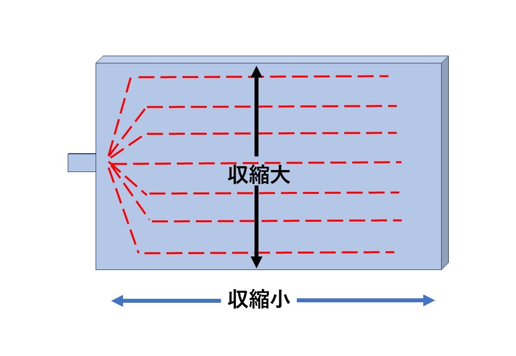 小さな収縮率でも油断できない方向依存性と熱履歴の影響