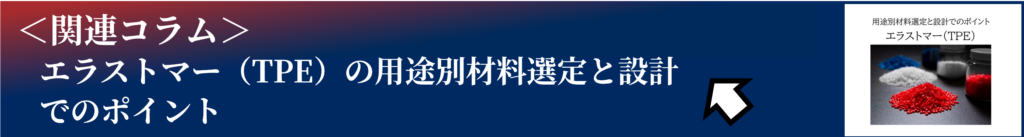 TPEは種類が多く、同じ「エラストマー」という名称でも特性が全く異なるため、材料変更には大きなリスクが伴います。