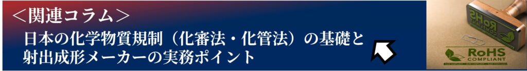本コラムでは、化学物質管理の標準的な枠組みである「JAMP管理ガイドライン」をベースに、射出成形メーカーが整備すべき文書体系と、府中プラが実践している管理の仕組みについて解説します。