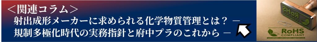 私たち成形メーカーは、単に「RoHS指令の10物質が入っていないか」を確認するだけでは不十分です。材料選定の段階で、世界各地で起きている規制の波を把握し、将来的なリスクを予見する視点が求められる時代になっています。