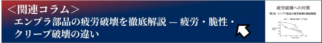 つまり、樹脂の疲労は「応力 × 時間 × 環境」の3軸で進行する劣化現象であり、金属のように「この応力以下なら永久に安全」という領域は基本的には存在しないと考えるべきです。